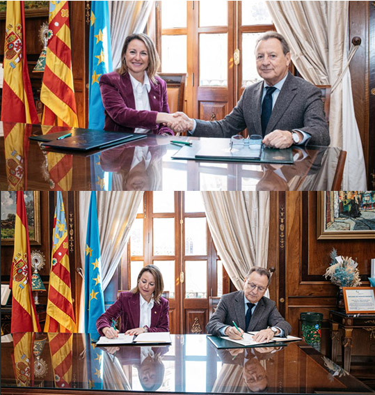 La alcaldesa de Castellón, Begoña Carrasco, ha firmado hoy el protocolo de intenciones por el que el Ayuntamiento de Castellón se compromete a apoyar la nueva iniciativa “Time of Spain” que impulsa la Asociación Española de Asociación Española de Fabricantes de Azulejos y Pavimentos Cerámicos (ASCER) y que ha rubricado también el presidente de la patronal cerámica, Ismael García Peris.
