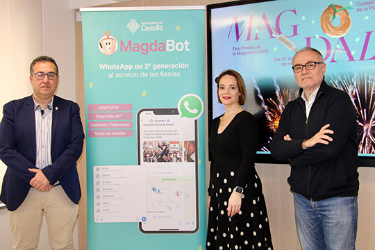 Castellón vuelve a contar con Magdabot para tener la información más actualizada de la Magdalena a un solo click El concejal de Modernización, Paco Cabañero y la concejala de Fiestas, Noelia Selma han trabajado de forma transversal para ofrecer toda la información de las fiestas de la Magdalena en tiempo real y a demanda del usuario a través del bot de WhatsApp, que podrán descargar los usuarios a través de un QR que encontrarán en los ‘llibrets de festes’