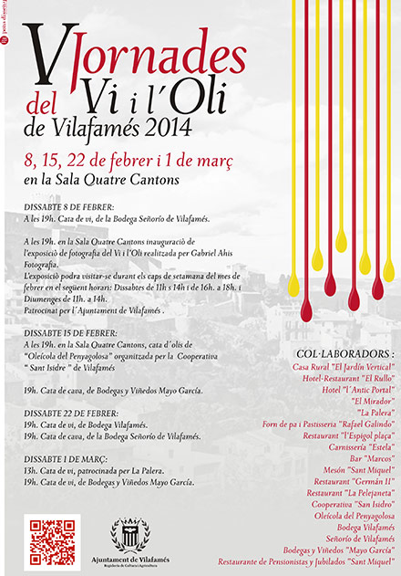 Pons ha señalado que “dentro de nuestra política de promocionar un turismo de proximidad y de fin de semana que mejor que plantear este tipo de jornadas que quierer poner en valor productos como son el vino y el aceite”. Estas jornadas se inaugurarán el sábado 8 de febrero a partir de las 19 horas con una cata de vino de la Bodega Señorio de Vilafamés asi como con una exposición fotográfica realizada por Gabriel Ahis, patrocinada por el consistorio.