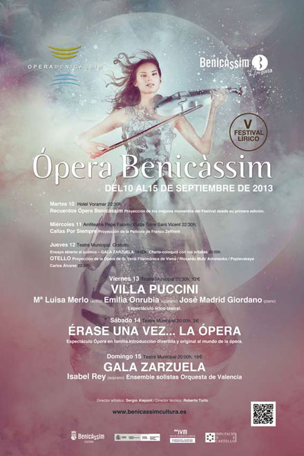 La celebracion de la V edición del Festival Lírico “Ópera Benicàssim” tendrá lugar del 10 al 15 de septiembre con un atractivo programa de actividades tendente a promocionar la música lírica y operística.