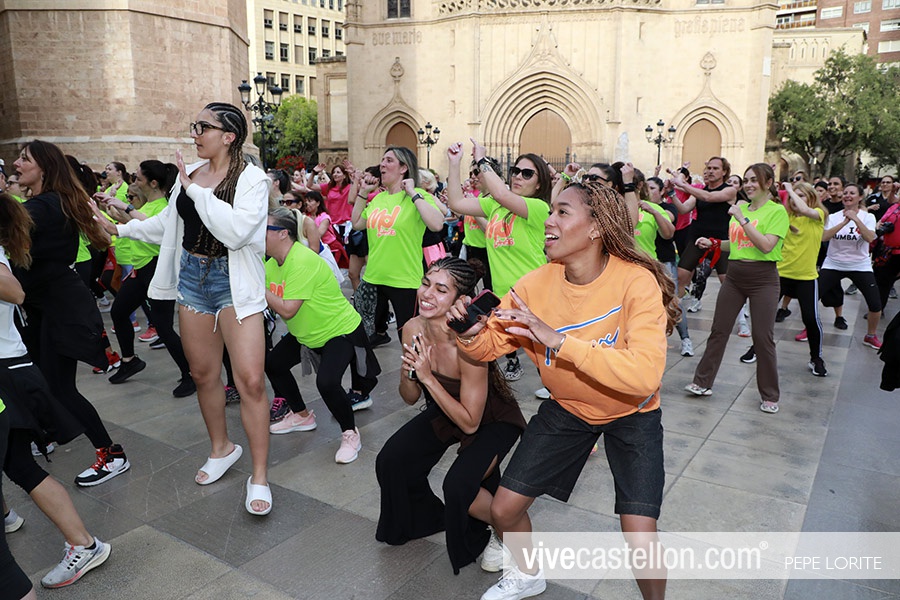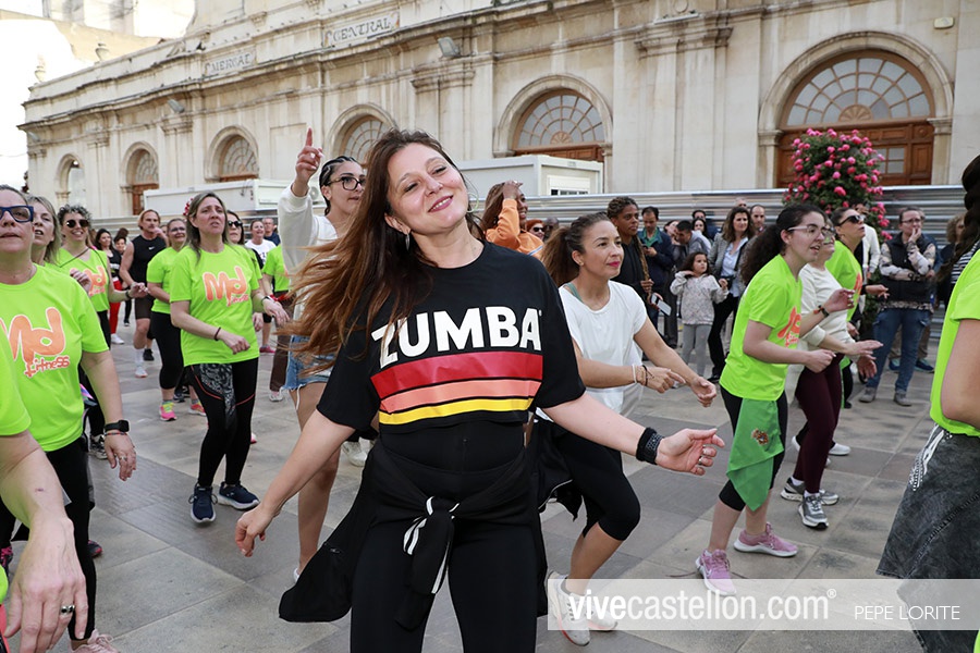 Clase de zumba al aire libre en la plaza Mayor de Castellón