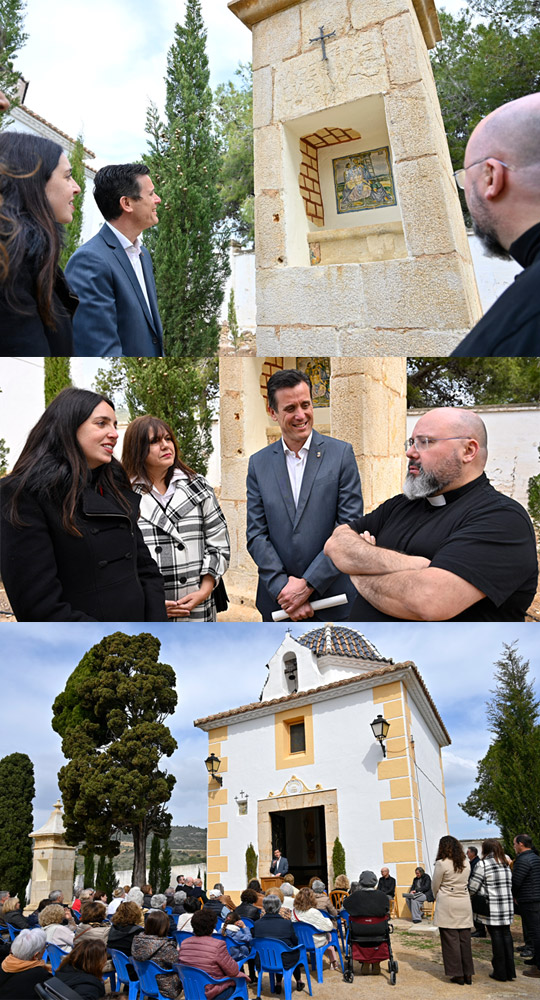 El diputado de Cultura, Alejandro Clausell, junto a la alcaldesa de Torreblanca, Tania Agut, ha inaugurado este viernes los trabajos de conservación que se han llevado a cabo en este espacio de gran veneración para los vecinos de Torreblanca, destacando la importancia de preservar este enclave tan significativo desde el punto de vista patrimonial, cultural y religioso.