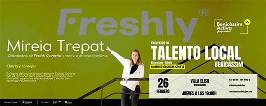 La referente del emprendimiento digital y cofundadora de Freshly Cosmetics, Mireia Trepat, llega a Villa Elisa el próximo 26 de febrero para compartir claves, inspiración y mucha energía emprendedora en un nuevo encuentro de Talento Local Benicàssim.