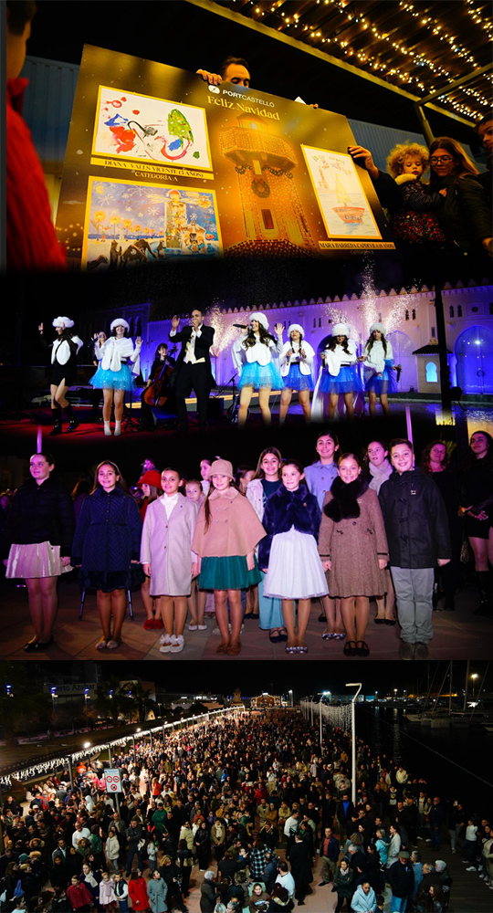 PortCastelló ha dado hoy el pistoletazo de salida a la Navidad en el puerto de Castellón con el acto de encendido de la iluminación navideña de la zona lúdica. Ha sido un acto multitudinario y participativo, en el que se ha involucrado al público, especialmente a los más pequeños, a través de una leyenda interpretada y conducida por un tenor, que a su paso por lo puntos clave del moll de costa y la plaza del Mar ha ido encendiendo las luces con ayuda de los asistentes.
