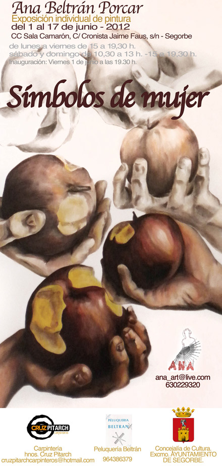 Del 1 al 17 de junio de 2012 Ana Beltrán Porcar expone sus pinturas bajo el título "Símbolo de mujer" en Segorbe en CC Sala Camarón C/ Cronista Jaume Faus s/n - Segorbe
